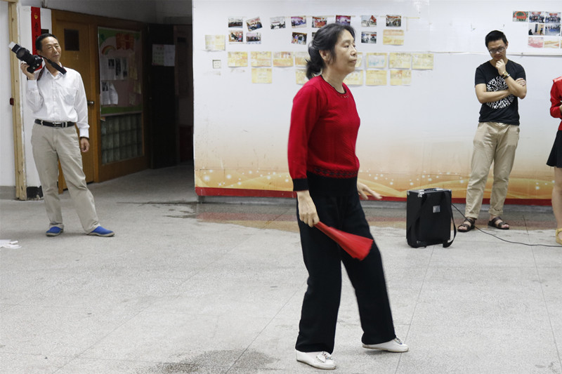 盲人阿姨为我们表演太极扇,动作相当到位。
